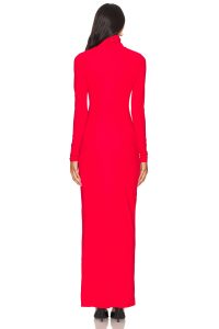 Estilo de cuello alto. Detalle de roseta con frunces y abertura lateral