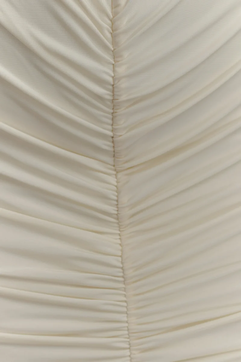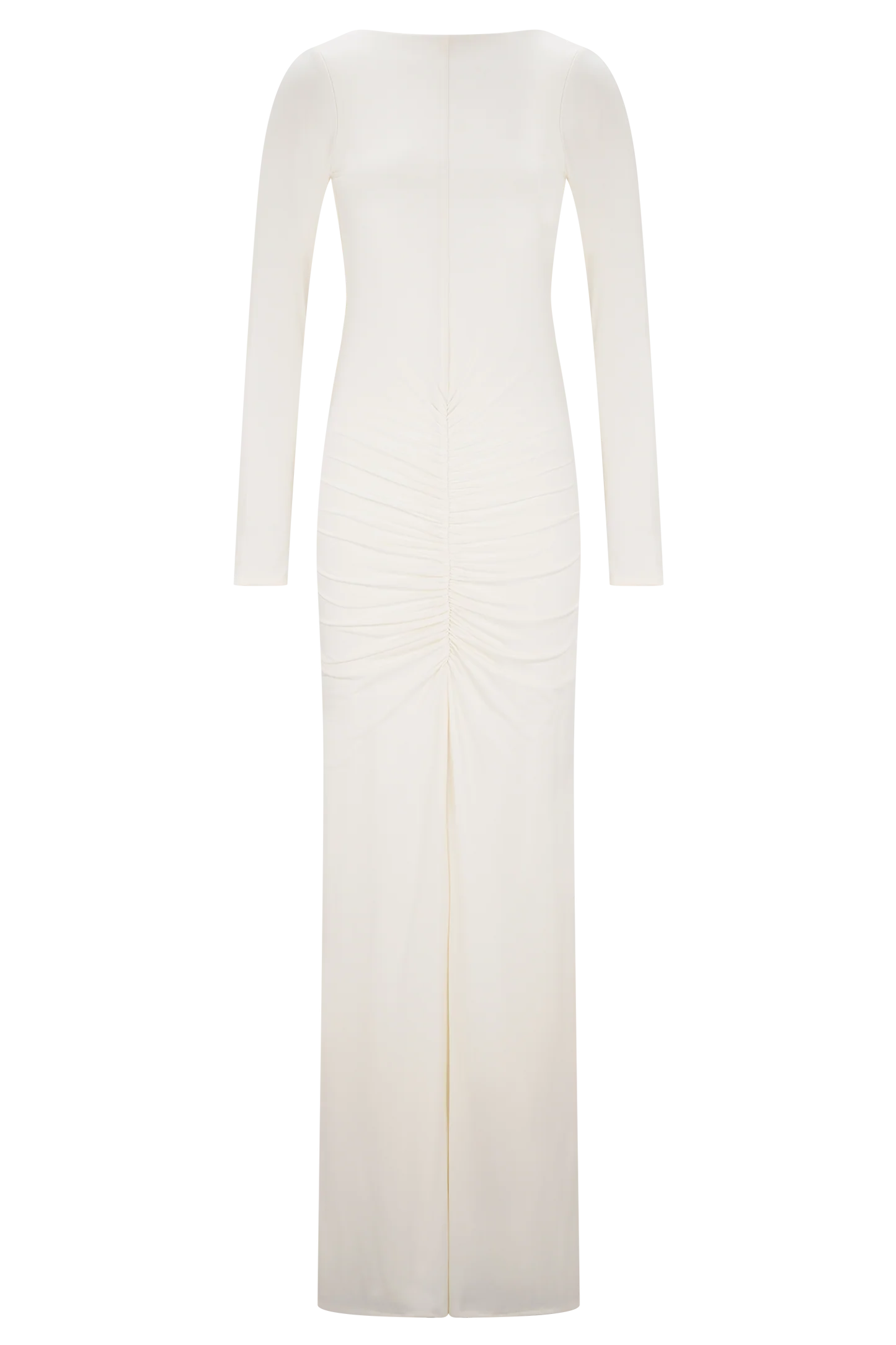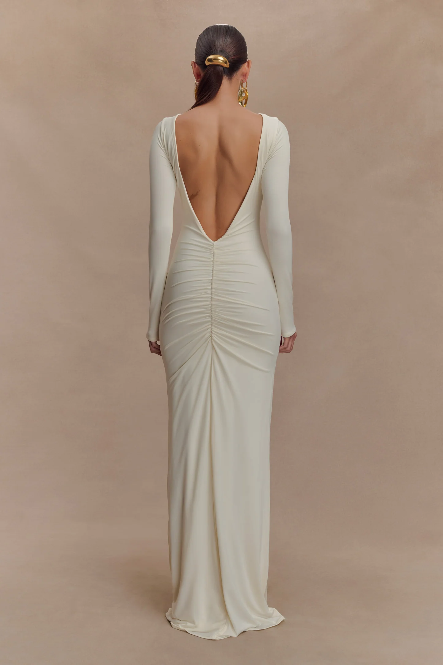 El vestido largo ajustado de manga larga LOUISA es una elegante declaración de minimalismo moderno. Diseñado con un elegante escote barco y una espectacular espalda en V, este modelo totalmente forrado se adapta al cuerpo con una silueta elegante y ajustada. Las mangas largas y los detalles fruncidos en los hombros añaden un volumen suave, mientras que el fruncido en la cadera aporta una textura y un movimiento sutiles. Con un largo maxi que roza el suelo, este vestido está pensado para esas veladas que requieren un dramatismo discreto y una sofisticación natural.